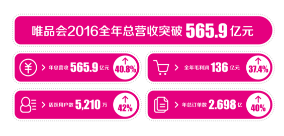 • 唯品會2016總營收達565.9億