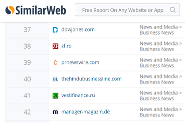 一同上榜的英文媒體網站還有Yahoo(21位),紐約時報(28位)、CNN(50位)、福布斯(67位),MSN (71位),華爾街日報 (74位),路透社 (90位),彭博社(93位)等。騰訊網(38位)、百度(68位)、微博(167位)、新浪網(261位)和搜狐網(449位)等多家國內互聯網站,也分列此榜單TOP500。