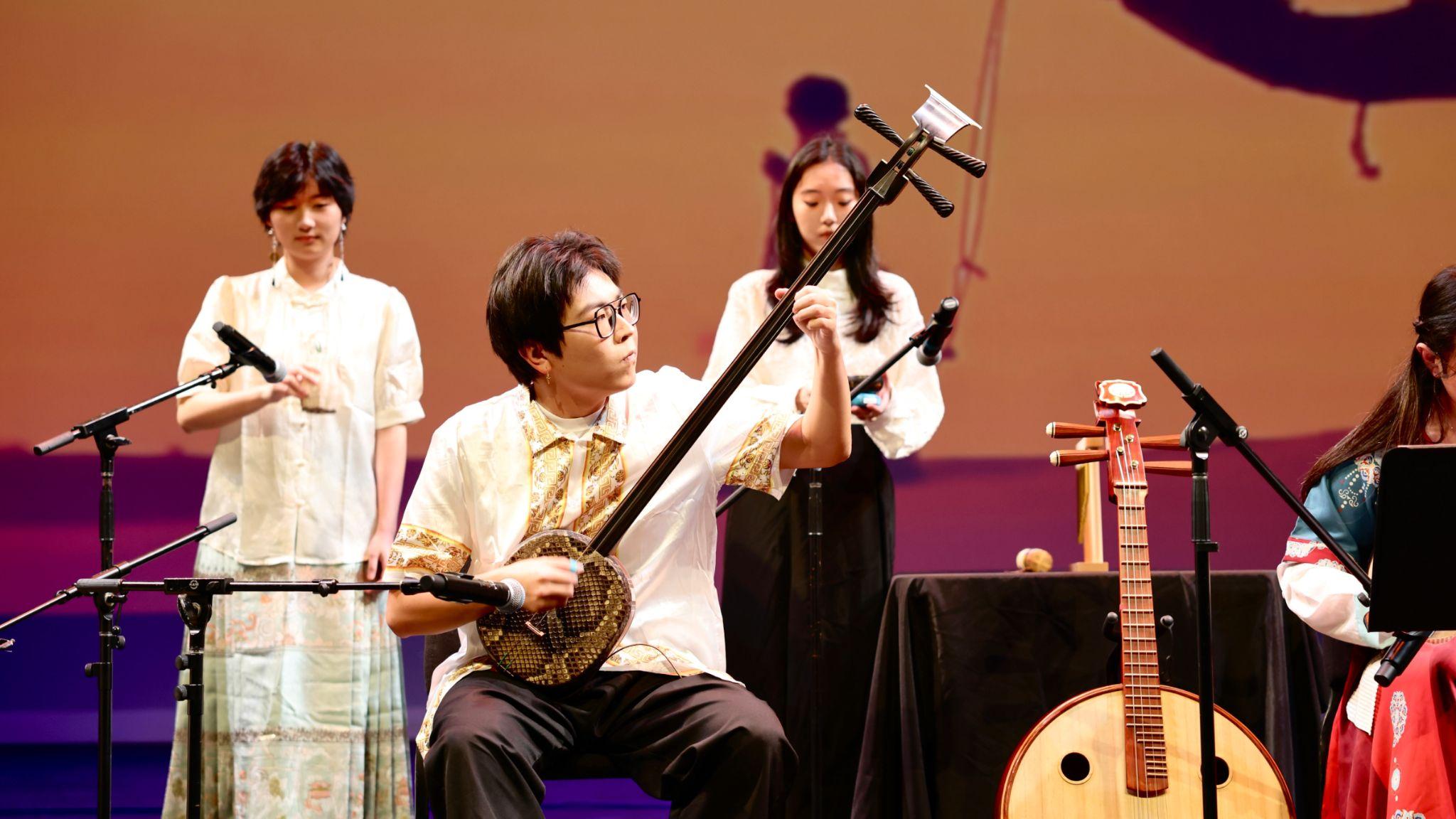 多年來,Five-Millennia Orchestra 與 UCSD CSSA 多次攜手合作,共同打造了一系列精彩的文化演出。本次春晚,樂團(tuán)特別帶來了原創(chuàng)曲目 《長河落日圓》,以悠揚古韻與磅礴旋律交織出一幅大漠孤煙、長河落日的壯闊畫卷。琴瑟低吟、鼓點激昂,樂曲在靜謐與澎湃之間流轉(zhuǎn),仿佛將觀眾帶入千年之前的邊塞詩意之境。