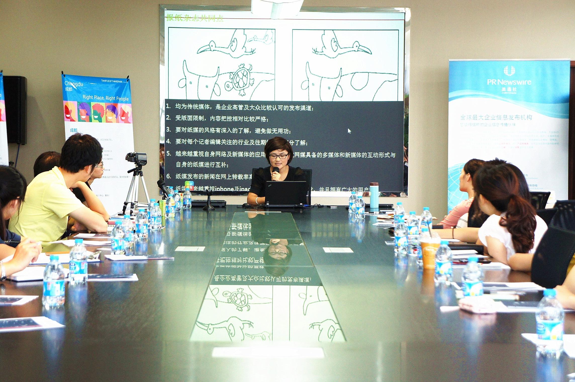 成都2012年7月16日電 /美通社亞洲/ -- 7月12日,由美通社攜手天府軟件園共同打造的“新傳播茶會”在成都天府軟件園C區成功舉辦。此次以“企業傳播與推廣”為主題的茶會吸引了近五十家企業的代表參加,他們包括吉勝科技、安科思軟件、美幻科技、華邁通信、中智、飛魚星科技、木瓜移動等。演講嘉賓美通社媒體關系總監楊麗娜、IT168和泡泡網成都站負責人劉斌分別就企業傳播技巧、危機公關、互聯網推廣與營銷等話題向與會嘉賓進行了分享。