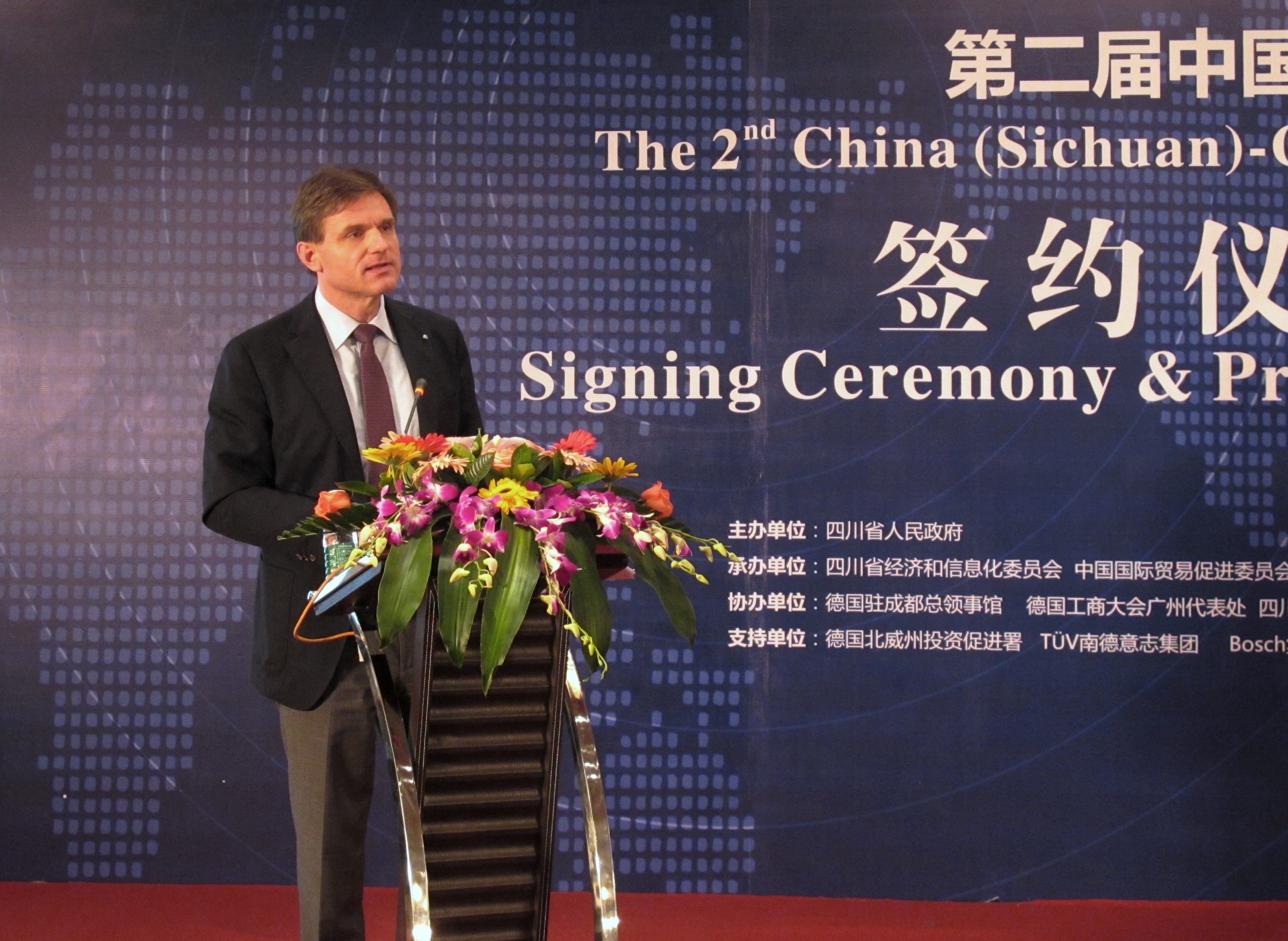 四川憑借其豐富的資源、重要的戰(zhàn)略地位以及巨大的市場潛力,已經(jīng)逐步成為西部經(jīng)濟跨越式發(fā)展的引擎。同時,四川是傳統(tǒng)的重工業(yè)制造基地,擁有良好的工業(yè)基礎(chǔ)和技術(shù)累計。在學(xué)術(shù)方面,更是擁有眾多科研院所和高等學(xué)府,每年培養(yǎng)了大量技術(shù)人才支持西部的發(fā)展。TUV SUD 大中華集團總裁 & CEO 范華德(Dirk von Wahl)先生在發(fā)言中表示:“通過近距離的交流切磋,一方面使中德企業(yè)間增進了了解,為以后的合作創(chuàng)造更多條件;另一方面,TUV SUD 很樂意把集團在德國及歐洲相關(guān)領(lǐng)域的一些經(jīng)驗引進到這個區(qū)域,作為西部地區(qū)企業(yè)拉近與國際市場的紐帶與橋梁。”