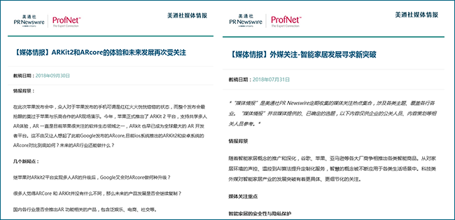 結合美通社獨有的媒體情報服務(ProfNet),本地媒體關系團隊整合實時媒體關注熱點和選題計劃,為內容生產提供新聞點切入?yún)⒖肌?/p>