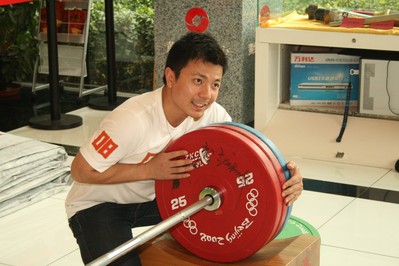 北京奧運(yùn)會(huì)男子舉重項(xiàng)目冠軍用杠鈴