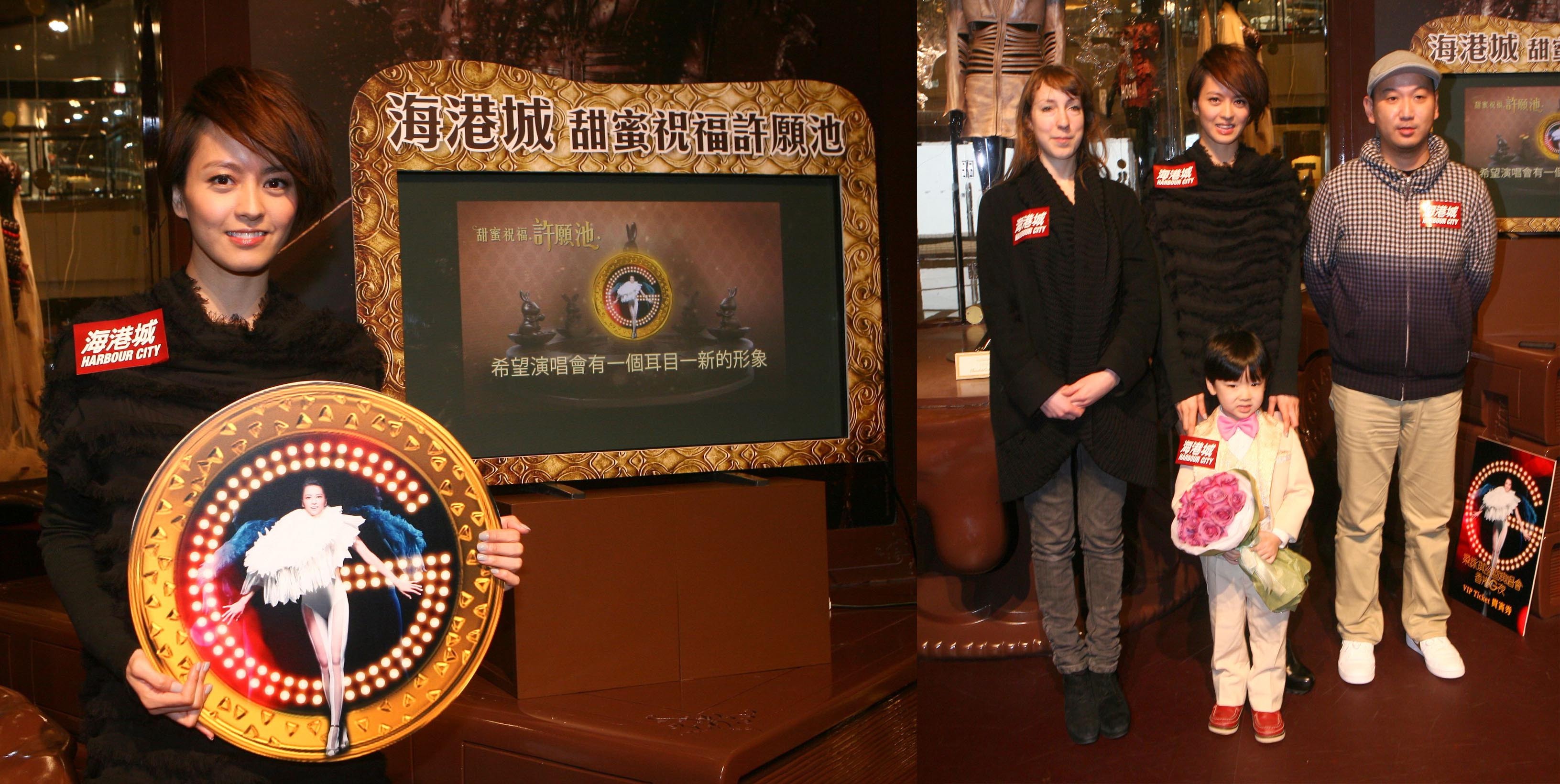 為隆重其事,海港城特別于2011年2月14日(星期一) 在海港城港威商場大堂I舉行“海港城‘甜蜜祝福許愿池’揭幕活動”,特別請來 梁詠琪(Gigi) 出席為海港城“甜蜜祝福許愿池”揭幕,成為首位許愿嘉賓,并暢談情人節(jié)趣事、兔年愿望、演唱會主題內容及籌備情況等。另外,遠道而來的荷蘭星級時裝設計師Iris van Herpen,又會與梁詠琪互相交流衣著心得,并為她即將舉行的演唱會給予專業(yè)服裝意見。而梁詠琪為表示感謝,亦會送贈特別的VIP演唱會門票予Iris。