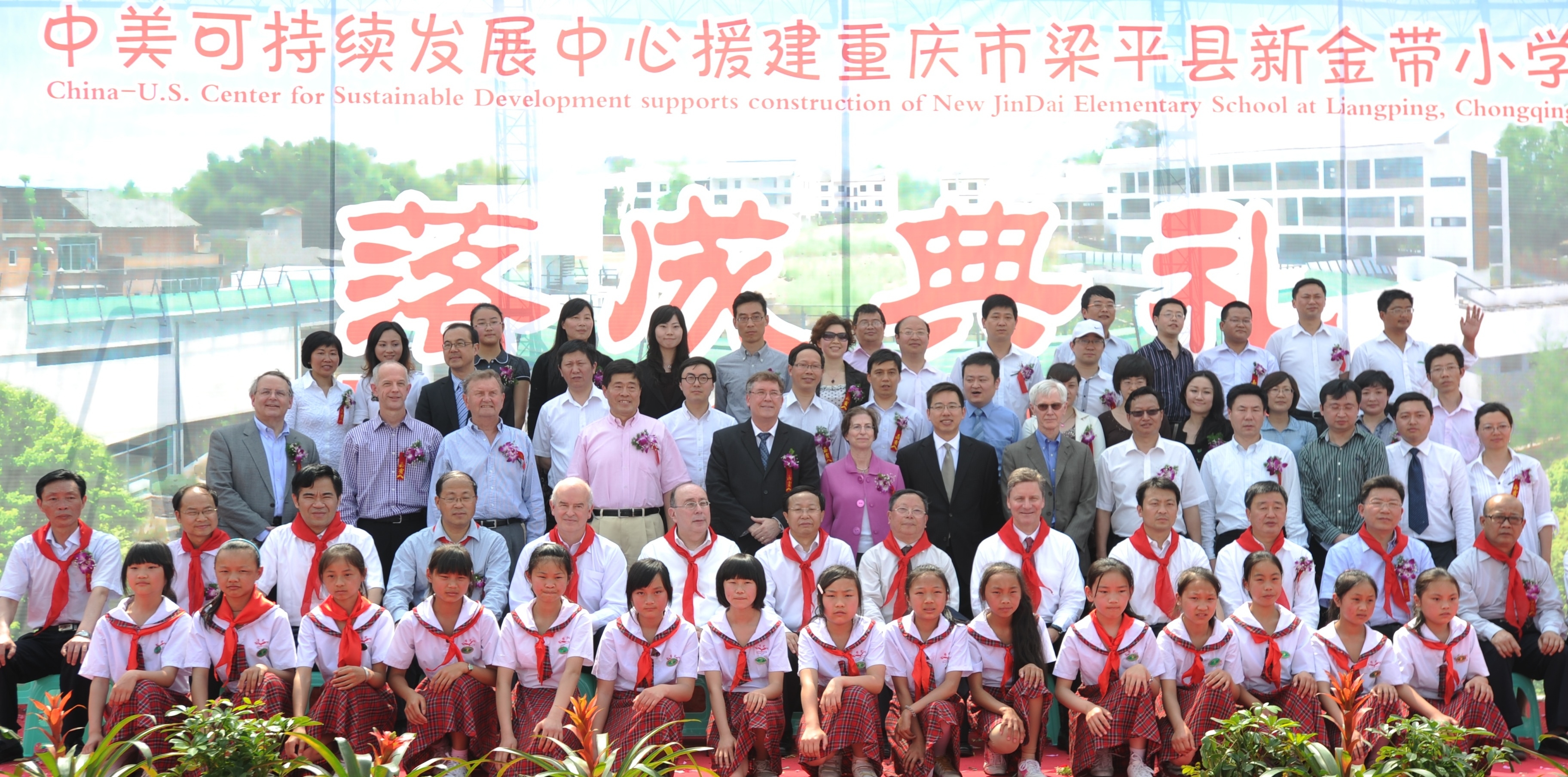 中美可持續發展中心美方理事會主席 Gary Dirks、中國21世紀議程管理中心主任郭日生、中國宋慶齡基金會基金部副部長李曉峰、中華環?;饡貢L李偉、沃爾瑪中國公司事務副總裁傅希孟(Barry Friedman)、沃爾瑪全球采購副總裁藍柯(Ken Lanshe)、沃爾瑪公司國際部可持續發展高級總監柯培新(Beth Keck)等嘉賓及數十名來自沃爾瑪重慶各商場的員工代表出席了新校園落成儀式。沃爾瑪還向新金帶小學捐贈了師生急需的電腦等價值萬元的學習及體育用品。