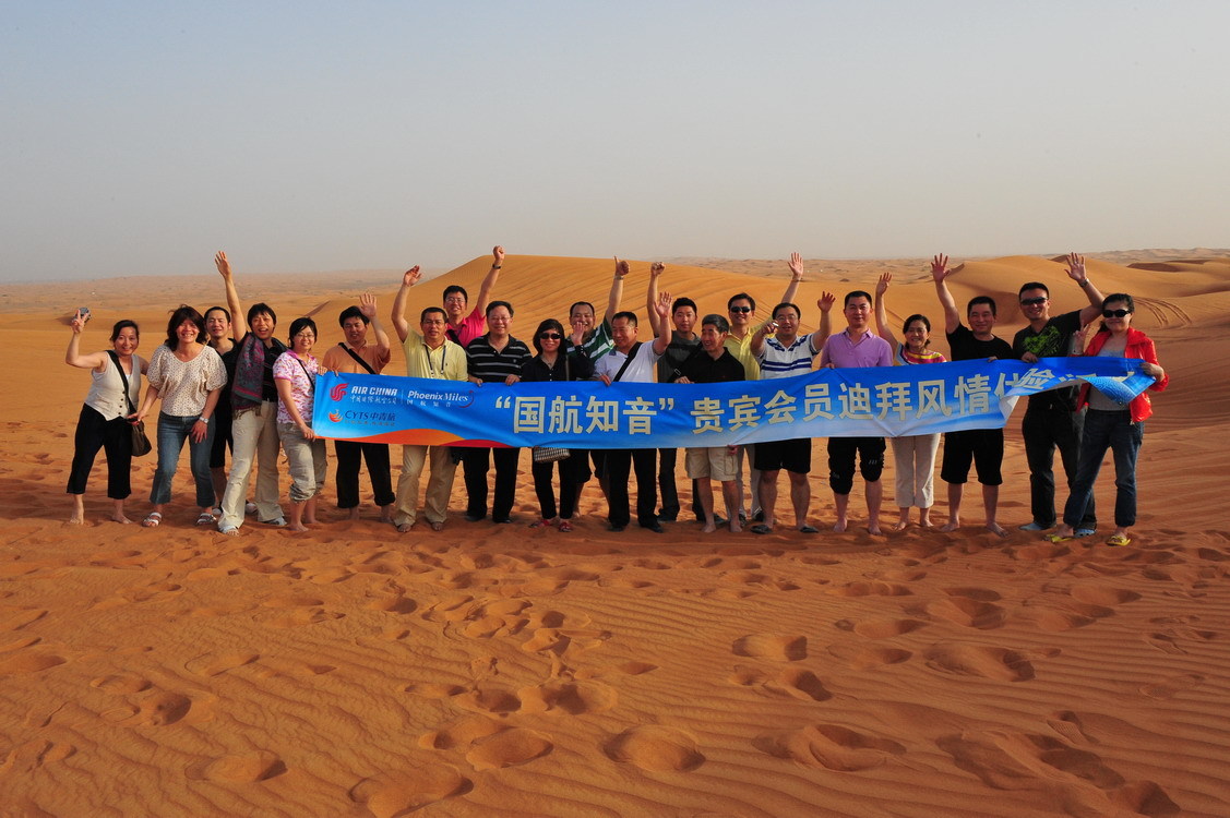 北京2011年5月26日電 /美通社亞洲/ -- 為答謝和回饋“國航知音”會(huì)員長期以來對國航的支持與信賴,同時(shí)加強(qiáng)會(huì)員間的溝通和了解,由中國國際航空公司商委市場部組織的兩批共40名“國航知音”白金卡會(huì)員迪拜之行活動(dòng)于2011年4月和5月舉行,讓會(huì)員們體驗(yàn)了一次美妙的阿拉伯風(fēng)情之旅。