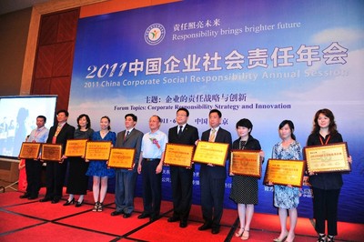 “第三屆企業社會責任年會”由中國外商投資企業協會、中國保護消費者基金會、中國民(私)營經濟研究會、中國環境新聞工作者協會和北京市石景山區人民政府聯合主辦,2011年6月17日在北京舉行。本次年會主題為“企業的責任戰略與創新”。當天企業高管、政府官員、專家、國際組織及 NGO、中外主流媒體記者等各界人士匯聚一堂。為提醒全世界的企業都來重視社會責任、更好的履行社會責任,并號召更多企業參與其中,經與會企業提議,年會組委會及與會的80家中外知名大公司還倡議從明年起,將每年的6月16日確立為世界“企業社會責任日”。