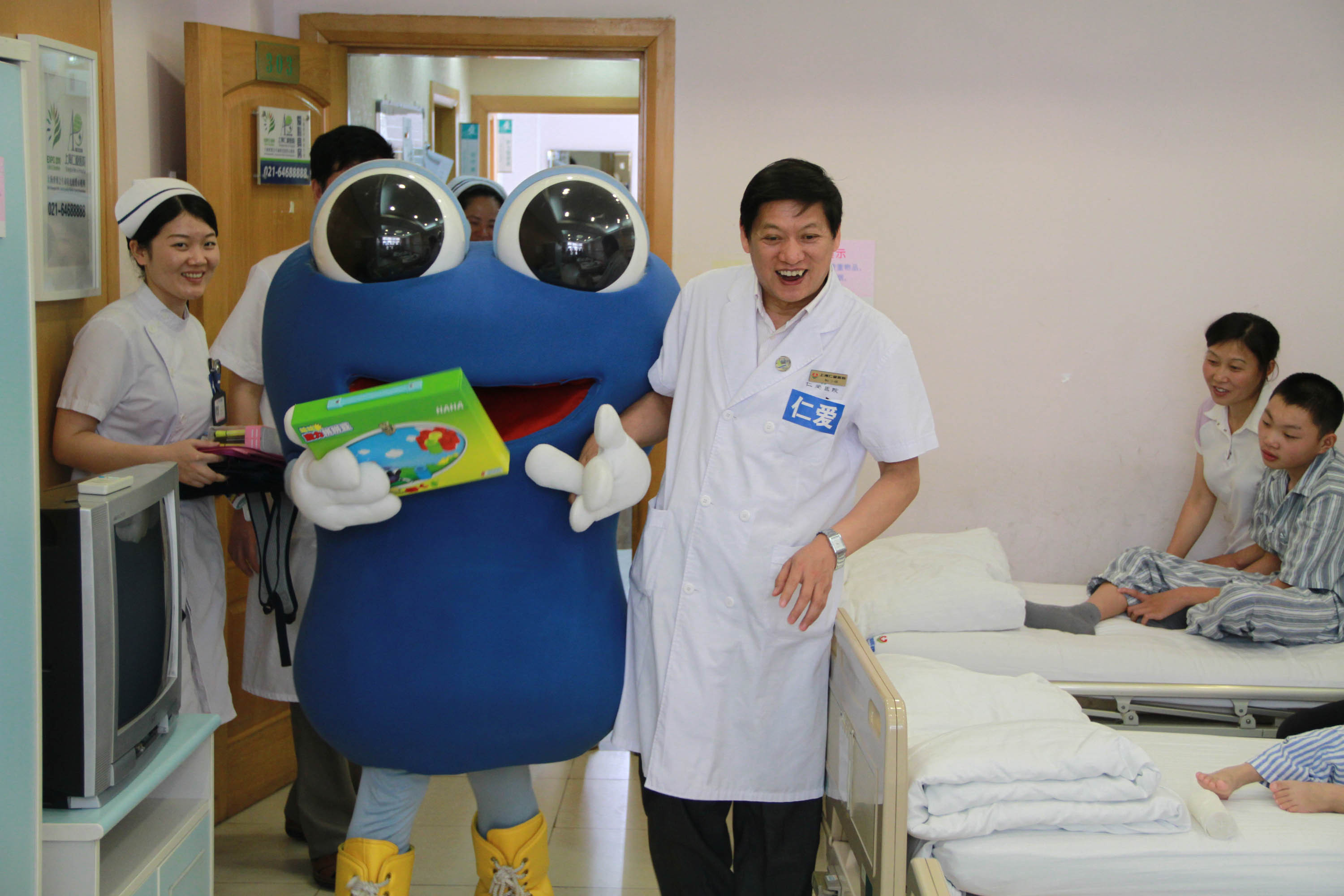 6月底,上海哈哈少兒頻道節(jié)目組一行人專訪上海仁愛醫(yī)院看望兩位受助孩子,上海仁愛醫(yī)院院長施龍飛拉著頻道吉祥物 -- 卡通青蛙形狀的“哈哈”的手走進(jìn)病房。憨態(tài)可掬的“哈哈”一直很受孩子歡迎,他代表節(jié)目組主持人和其他工作人員給孩子們送上了精美的玩具禮物,上海仁愛醫(yī)院則準(zhǔn)備了嶄新漂亮的書包、彩色畫筆、文具盒送給孩子們。小童撫摩著禮物,看著“哈哈”可愛的大眼睛,張開嘴現(xiàn)出了開心的笑容。小田抱者“哈哈”的大肚子,忍不住激動得淚流滿面。小童的家長用簡單樸實(shí)的語言表達(dá)了對節(jié)目組和醫(yī)院的感謝,孩子們又哭又笑,體會到了被更多人關(guān)愛的幸福。所有人都被他們的情緒感染了,哈哈少兒頻道和上海仁愛醫(yī)院,為這些迫切需要幫助的孩子和他們的家庭,切實(shí)有效地做出了善舉。