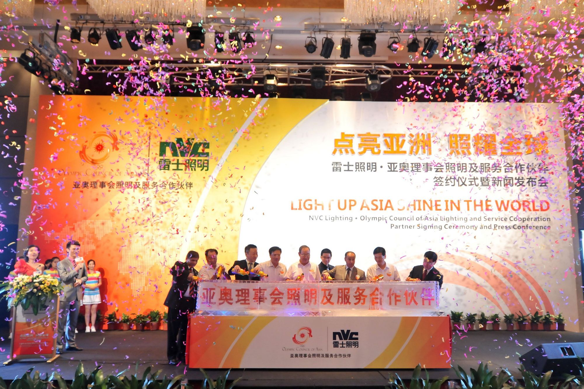 惠州2011年7月19日電 /美通社亞洲/ -- 7月18日上午, 國際知名專業照明企業、中國國內較大的照明品牌供應商 -- 雷士照明(香港聯交所股票代號:02222)在廣東省惠州市皇冠假日酒店隆重舉行“點亮亞洲,照耀全球 -- 雷士照明與亞奧理事會照明及服務合作伙伴簽約儀式暨新聞發布會”。根據雙方簽約協議,雷士照明將為今后亞奧理事會在亞洲地區所開展的賽事活動提供專業的燈光照明產品及服務方案。