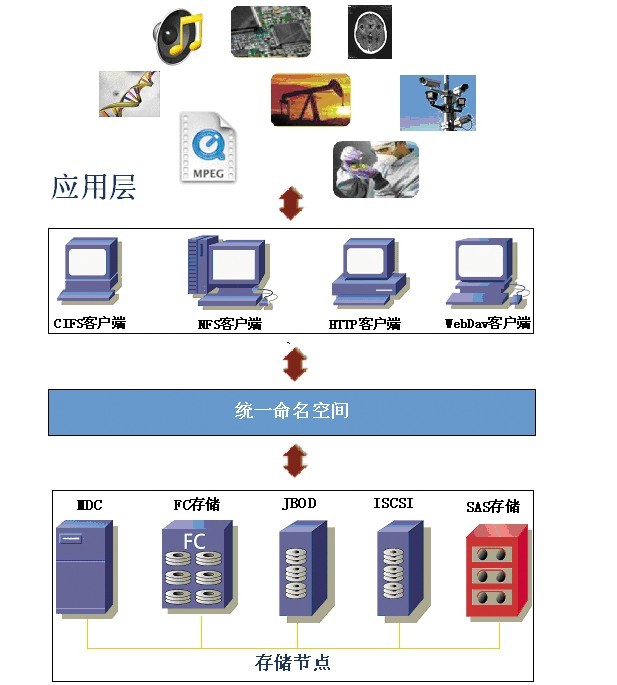 DFT NS-DCS(DFT Cloud Storage)系列擁有較為成熟的技術(shù),性能完善,可用性強(qiáng),更能解決客戶對(duì)數(shù)據(jù)安全的后顧之憂。DFT NS-DCS 是一款分布式的存儲(chǔ)系統(tǒng),利用創(chuàng)新的集群存儲(chǔ)架構(gòu)加快訪問(wèn)大量基于文件的關(guān)鍵數(shù)據(jù)的速度,同時(shí)顯著降低管理和存儲(chǔ)這些數(shù)據(jù)的成本和復(fù)雜度,可以定制靈活的解決方案來(lái)加速高并發(fā)吞吐和順序吞吐應(yīng)用,并且擁有已知市場(chǎng)上大型存儲(chǔ)系統(tǒng)可達(dá)的較高性能、容量和安全性。DFT NS-DCS 存儲(chǔ)解決方案,單個(gè)文件系統(tǒng)可支持上億的文件數(shù)和上百百億兆字節(jié)的空間后端存儲(chǔ)池,可支持目前主流存儲(chǔ)廠商的 FC、SAS、ISCSI、JBOD 產(chǎn)品。同時(shí),DFT NS-DCS 平臺(tái)可以實(shí)現(xiàn)動(dòng)態(tài)升級(jí),根據(jù)應(yīng)用和工作流程的需要,同時(shí)或分別進(jìn)行快速增容和性能提升,并提供靈活性的存儲(chǔ)空間。這就意味著客戶可以按需采購(gòu),節(jié)約成本。此外,DFT NS-DCS 存儲(chǔ)解決方案的模塊化架構(gòu)和智能軟件不僅大大減低部署和管理的難度,更切實(shí)地提高了客戶數(shù)據(jù)的安全性。即使在容量爆炸性增加的狀況下,在1分鐘內(nèi)也可實(shí)現(xiàn)動(dòng)態(tài)添加額外的存儲(chǔ)空間和處理能力,并在集群內(nèi)進(jìn)行自動(dòng)平衡,不需要宕機(jī)、手動(dòng)遷移文件和重新配置應(yīng)用。這就大大提高了平臺(tái)的可用性和安全性。