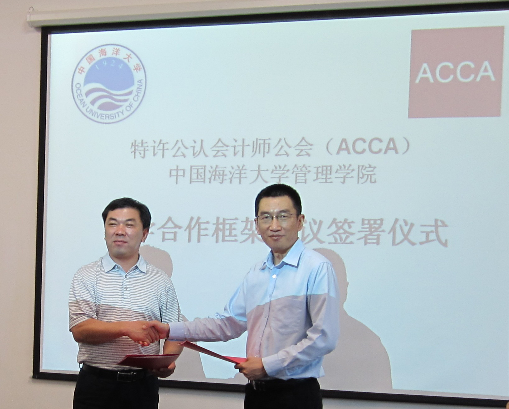 中國(guó)海洋大學(xué)管理學(xué)院教學(xué)合作框架協(xié)議”簽署儀式在中國(guó)海洋大學(xué)管理學(xué)院隆重舉行。ACCA 北京代表處首席代表于翔天先生與管理學(xué)院院長(zhǎng)權(quán)錫鑒教授、副院長(zhǎng)兼會(huì)計(jì)學(xué)系主任王竹泉教授等進(jìn)行了親切的會(huì)談并簽署了正式合作協(xié)議。根據(jù)協(xié)議,管理學(xué)院將 ACCA 國(guó)際財(cái)會(huì)資格課程嵌入到會(huì)計(jì)學(xué)專業(yè)本科教學(xué)中,計(jì)劃于2012年開(kāi)始招收第一期 ACCA 方向班學(xué)員,培養(yǎng)緊缺的國(guó)際化高級(jí)財(cái)會(huì)人才。