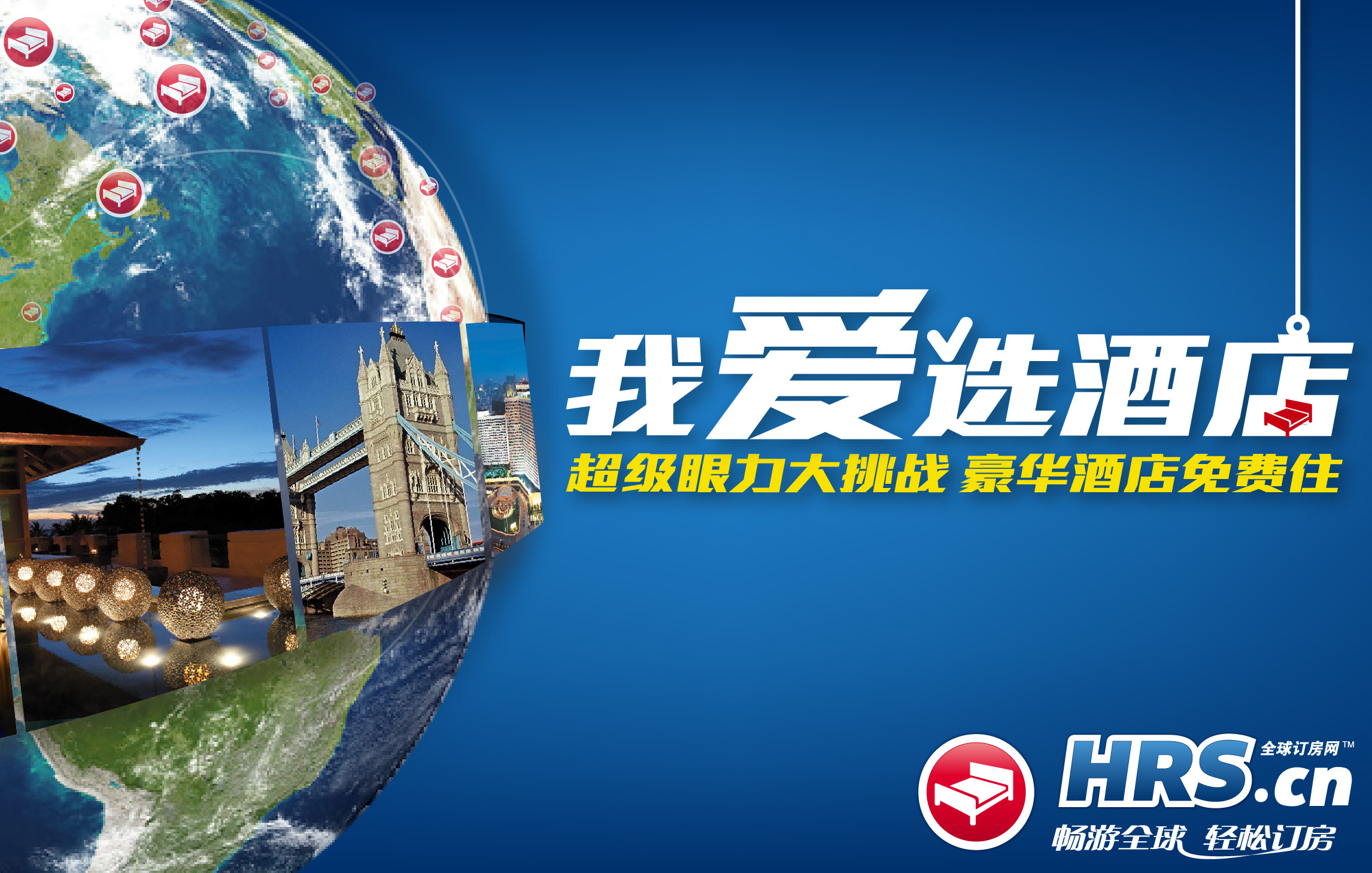 今天登場(chǎng)的最新網(wǎng)絡(luò)互動(dòng)活動(dòng)名為“我愛(ài)選酒店”,整個(gè)活動(dòng)圍繞全球訂房網(wǎng)HRS在180個(gè)國(guó)家25萬(wàn)家的酒店資源,全方位地挑戰(zhàn)網(wǎng)友的眼力和對(duì)酒店的知曉程度。題目范圍囊括了地理位置、內(nèi)部設(shè)施、酒店主題,應(yīng)有盡有。挑戰(zhàn)者的紀(jì)錄將被收錄,在2011年11月28日到12月23日活動(dòng)期間,登錄活動(dòng)頁(yè)面:campaign.hrs.cn/2011winter,直接參與酒店競(jìng)猜。前10名紀(jì)錄的最終保持者都將贏得入住五星級(jí)酒店的獎(jiǎng)勵(lì)。