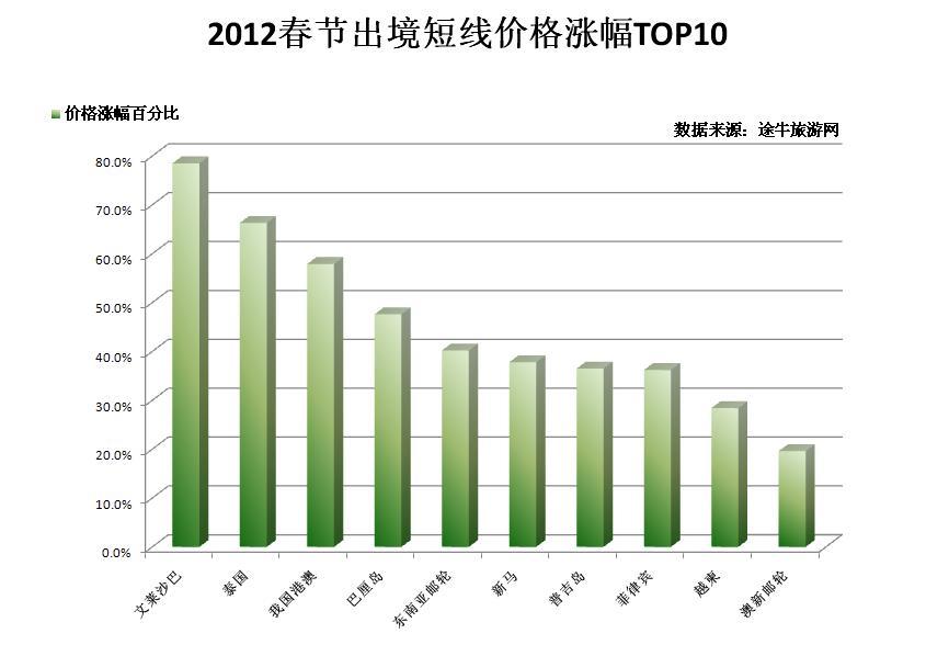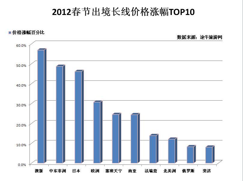 每年春節(jié)期間,多數(shù)旅游熱門方向都會有較大幅度的價(jià)格上漲,今年“春游”也不例外,多數(shù)熱門方向環(huán)比漲幅都在30%以上,部分方向漲幅甚至高達(dá)80%或出現(xiàn)翻番。“價(jià)格上漲對市民的出游熱情影響不大,如今年上海出發(fā)至澳洲新西蘭方向的高端線路漲幅達(dá)到了71.4%,上海出發(fā)至日本方向的高端線路上漲近58%,但出游人數(shù)卻不降反增。”途牛旅游網(wǎng)度假產(chǎn)品部總監(jiān)魏斌對市民出境游熱情表示看好。