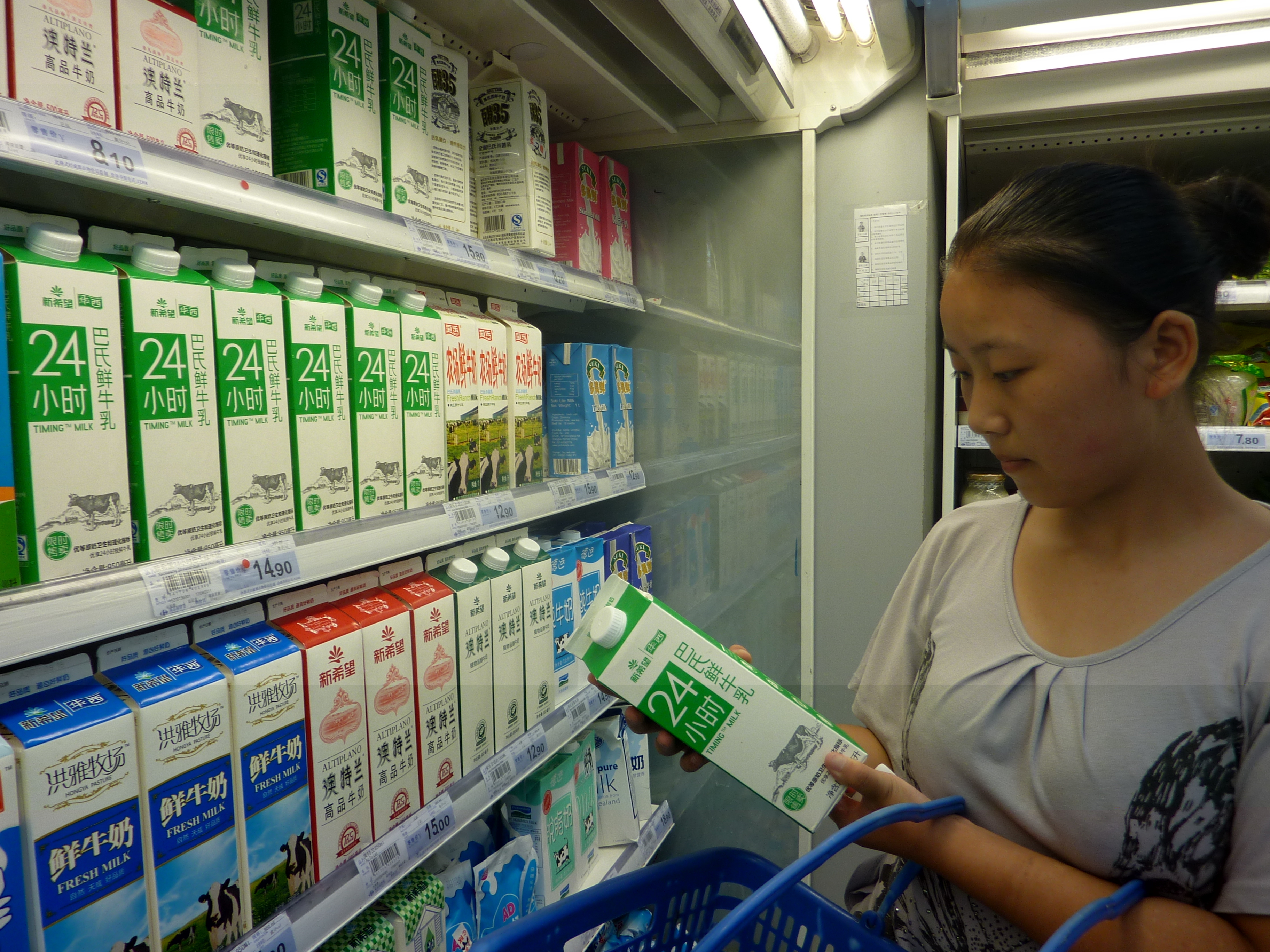 消費者在家樂福選購24小時鮮奶