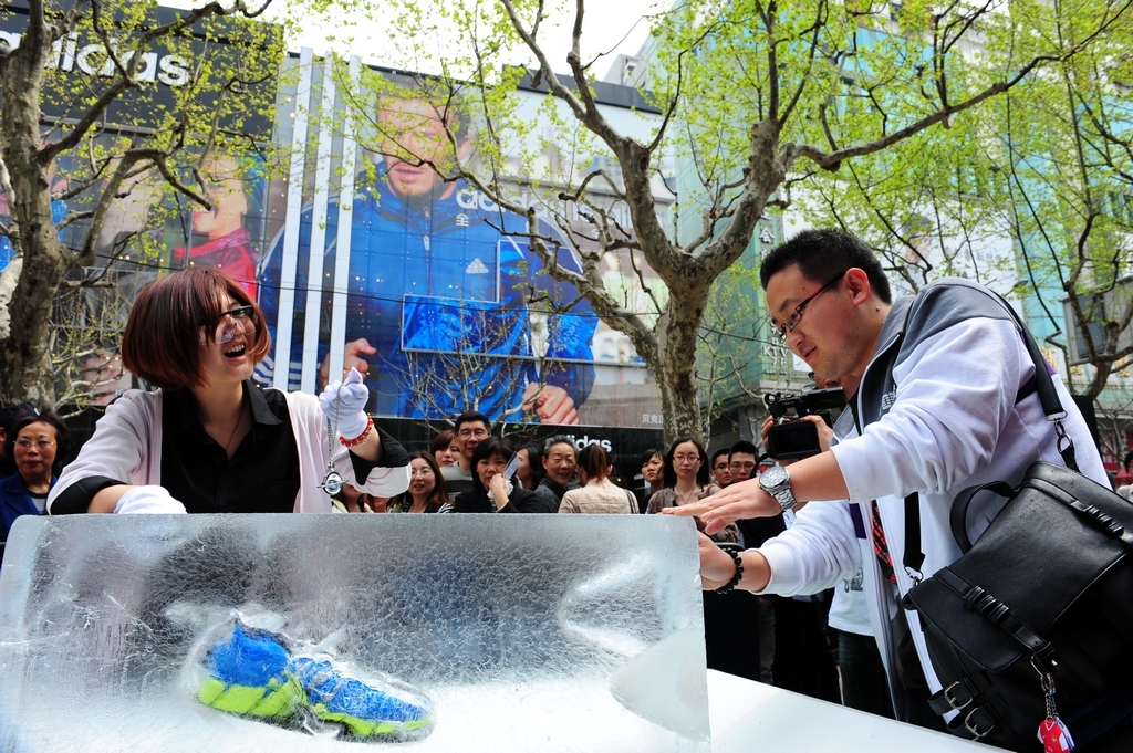 上海和北京2012年4月16日電 /美通社亞洲/ -- 繼奧運拳擊冠軍鄒市明和著名影星姚晨在北京向全國消費者發(fā)出“全傾全力360度透氣酷跑”的邀請后,阿迪達斯全國范圍內(nèi)的100家門店聯(lián)手邀請消費者于4月14和15日前往現(xiàn)場體驗全新ClimaCool清風跑鞋,阿迪達斯在上海淮海路以及北京三里屯品牌中心更是推出了全天路演,讓更多消費者親身參與體驗。活動借鑒了姚晨和鄒市明在發(fā)布會上跑步破冰贏鞋的形式,每一位到場者都有機會親身體驗并挑戰(zhàn)破冰環(huán)節(jié)。與此同時,阿迪達斯“奪寶奇冰”手機游戲也全新上線,消費者一邊在真實世界跑步,一邊在線搜集虛擬工具進行破冰,即可收獲最新清風跑鞋。