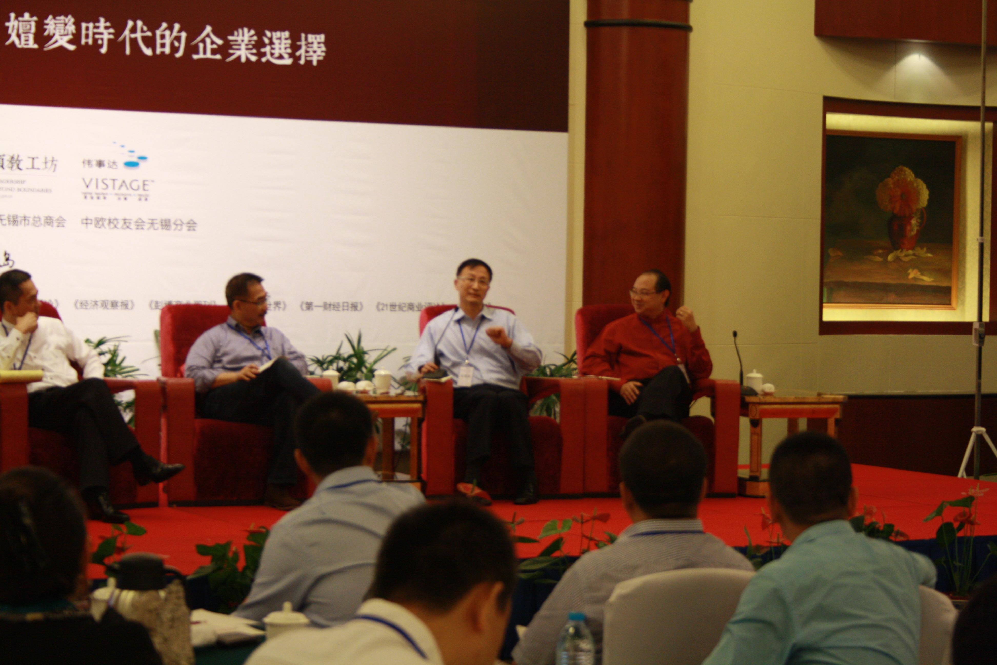 面對這樣的國際國內環境,中國的民營企業家應該如何更好地發展成長呢?私人董事會這種獨特的學習模式無疑成了眾多企業家所感興趣的選擇。在接下來的對話環節里,前惠普 (HP) 全球副總裁兼大中華區總裁孫振耀,前思科 (CISCO) 大中華區總裁林正剛,中國總裁教練第一人、偉事達企業家001小組導師張偉俊,以及前固鉑輪胎中國區總經理辜思歷四位導師分別用鏡子、眼鏡、萬花筒等等精妙的比喻闡述了私人董事會之于企業家的意義。孫振耀意識到,通過私人董事會的腦力激蕩,很多企業家也往往會從過分焦慮或者過度自信,轉為內心的平靜,這恰恰是做企業較好的狀態。林正剛認為,自己在私人董事會的交流分享中領悟到,領導重要的是要學會從事必躬親到放手,“如果是別人讓他做,員工就會叛逆,只有自發地去做,才是較大驅動力。”張偉俊則犀利地表示出,私人董事會更像是一面鏡子,他指出,很多問題探討到最后,發現都是老板自己有問題,但是作為老板,卻往往意識不到。他幽默地比喻很多老板是"猴子屁股座不定,大象屁股推不動",在參加私人董事會之前,老板們往往覺得自己不但至高無上,而且獨一無二,而在私人董事會,他們收獲的是謙虛的內心和擅于聆聽的技巧。辜思歷將私人董事會比喻為萬花筒,雖然外表看起來一樣,內在卻孕育著一個個大千世界。在這里,理論和實踐,東西方文化差異這兩道鴻溝都會被跨越。