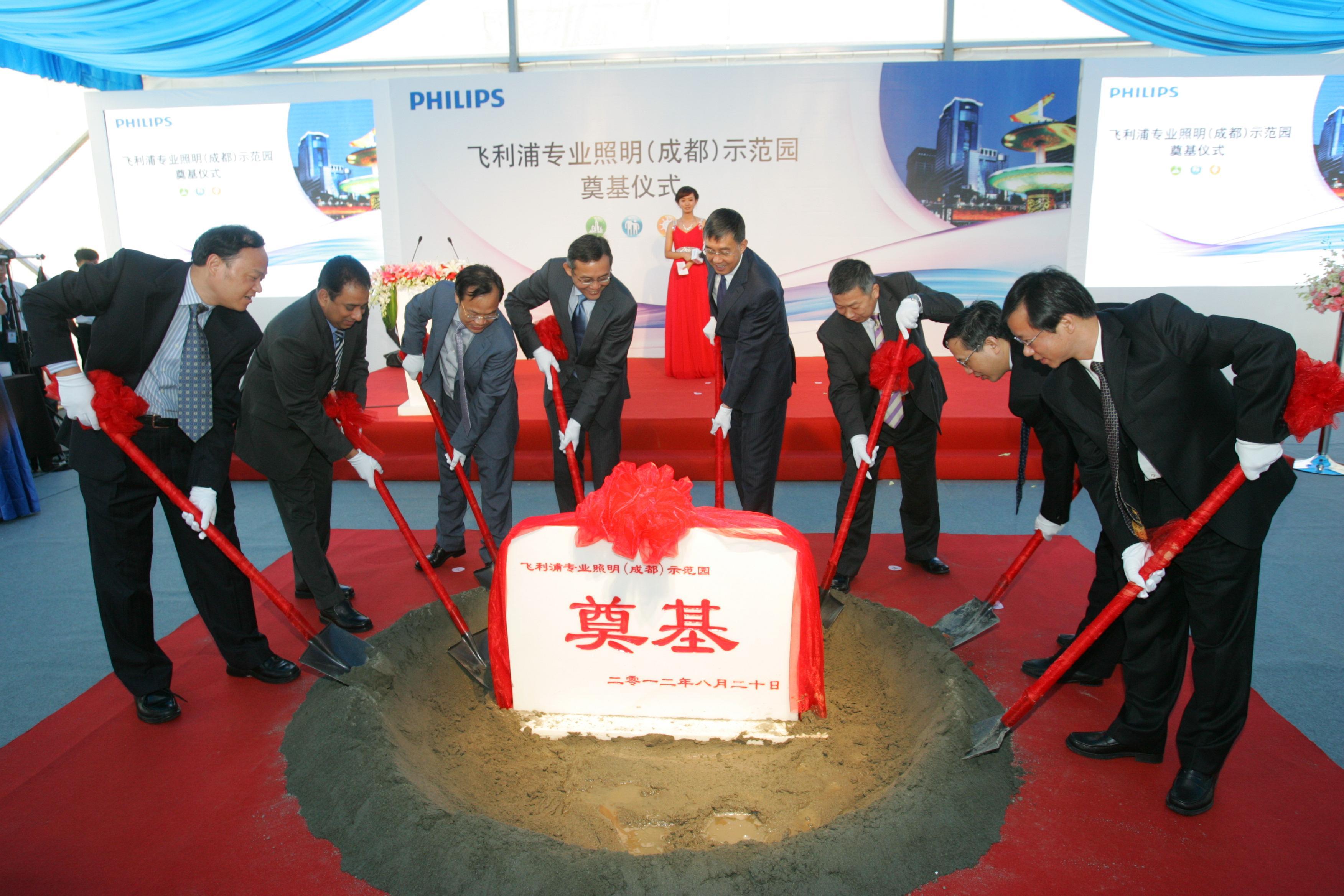 奠基儀式上,成都市委常委、高新區黨工委書記敬剛代表成都市和成都高新區對項目奠基表示熱烈祝賀。他說,飛利浦是世界上較大的電子公司之一,去年與成都簽署戰略合作協議以來,雙方的合作不斷深化。繼飛利浦將中國第二個地區總部放在成都高新區之后,今天,又將飛利浦 LED 照明解決方案應用制造項目布局成都,充分體現了飛利浦對成都未來發展前景的信心,體現了飛利浦公司的遠見卓識。他表示,該項目將為成都高新區打造世界級電子信息產業基地注入新的動力,同時也將進一步提升成都的產業發展水平和可持續發展能力。成都高新區將一如既往地大力支持飛利浦在成都的發展,并為項目早日建成投產提供優質服務。