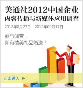 北京2012年8月27日電 /美通社亞洲/ -- 美通社正式啟動2012中國企業內容傳播與新媒體應用調查。本次調查旨在了解中國企業內容傳播的現狀,包括使用渠道、預算投入、未來趨勢,以及中國企業在各種新媒體應用工具、社交媒體平臺的使用情況。此次調查為期三周,將通過電郵、微博、社交網站等多種渠道向企業中從事公關傳播、品牌推廣和市場營銷的人士進行推廣。參加者只要提交有效問卷,就會獲得美通社定制的精美萬用毯。點擊參與http://m.ugift.cc/marketing/survey-2012。