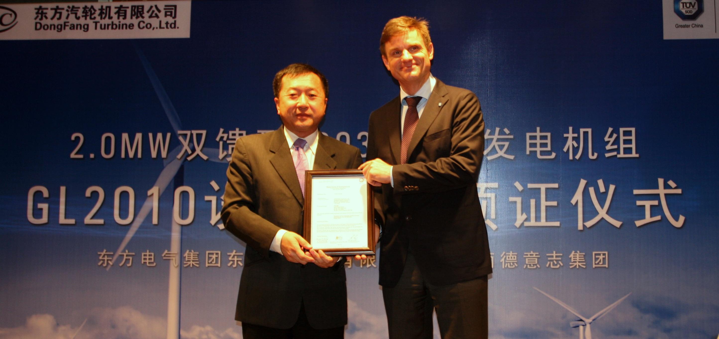 東方汽輪機有限公司獲得中國首個TUV SUD頒發GL2010設計認證