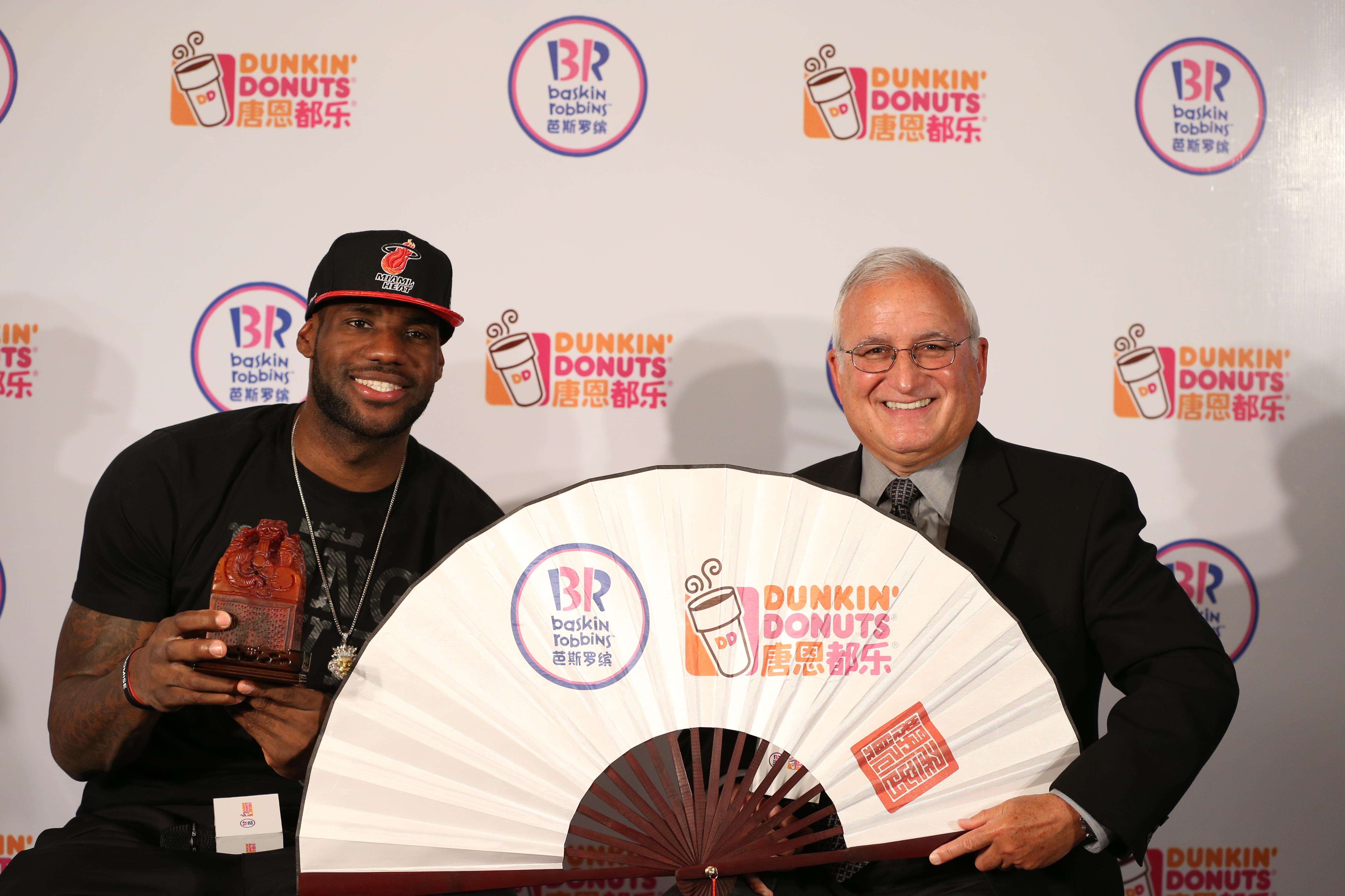 作為全球較大的咖啡及烘焙食品連鎖店唐恩都樂(lè)以及全球較大的連鎖冰淇淋店芭斯羅繽的母公司,Dunkin品牌公司是一家擁有將近120年特許經(jīng)營(yíng)經(jīng)驗(yàn)的全球餐飲巨頭?!拔覀兎浅8吲d與勒布朗合作并舉辦今天這個(gè)特別的活動(dòng),向大家展示Dunkin品牌公司對(duì)中國(guó)市場(chǎng)的關(guān)注與承諾,”John Costello先生表示,“今年是勒布朗的職業(yè)生涯中最具歷史意義的一年 -- 他不僅率領(lǐng)邁阿密熱火隊(duì)贏得2012 NBA總冠軍、第三次當(dāng)選聯(lián)盟MVP(有價(jià)值球員),還在剛剛結(jié)束的倫敦奧運(yùn)會(huì)上,幫助美國(guó)國(guó)家隊(duì)成功衛(wèi)冕!我們非常期待與勒布朗攜手推進(jìn)唐恩都樂(lè)和芭斯羅繽品牌在中國(guó)的跨越式發(fā)展?!?/p>