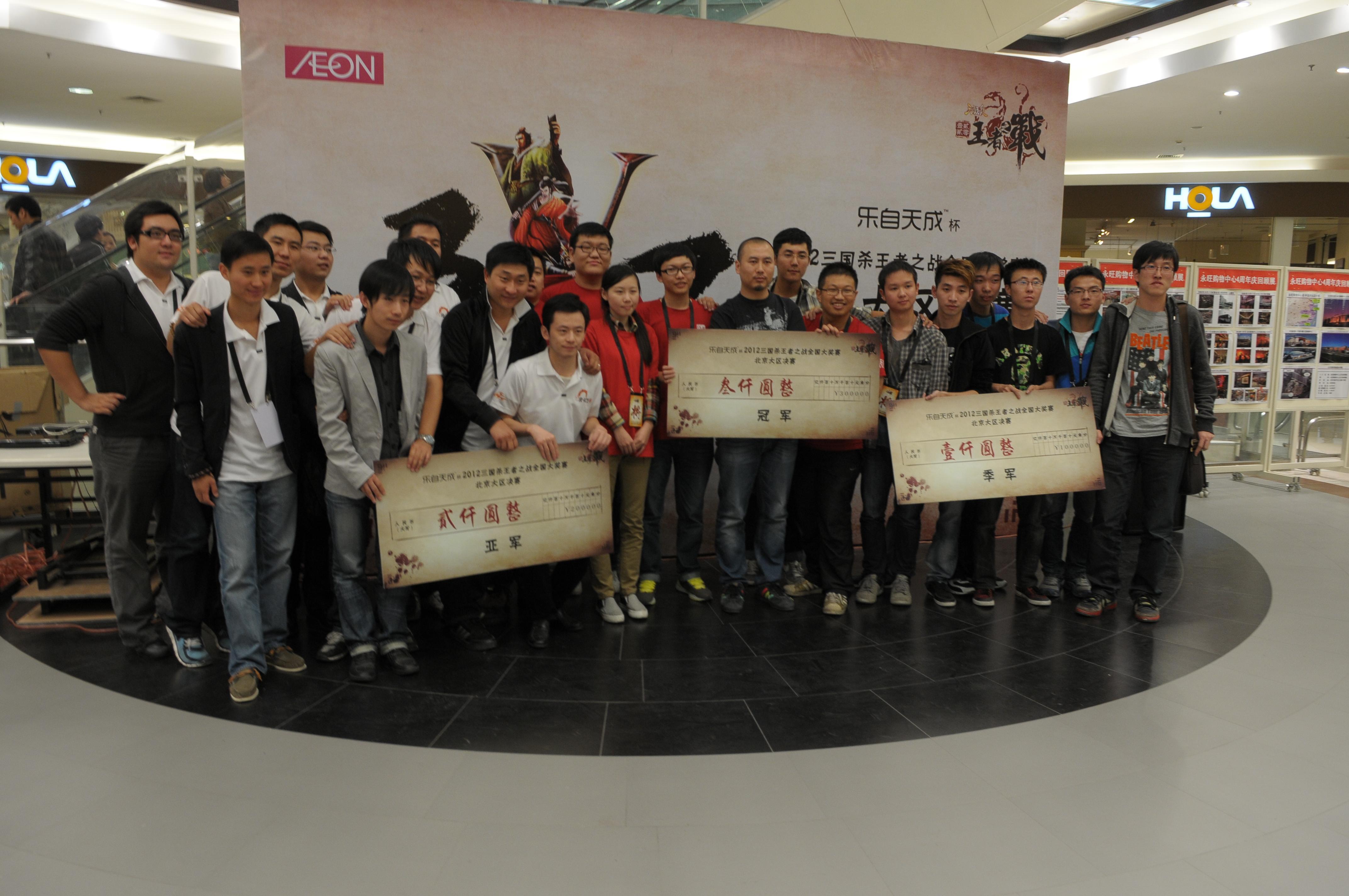經(jīng)過兩天的浴血奮戰(zhàn),10支戰(zhàn)隊(duì)終于脫穎而出,其中殤龍逐鹿,皮卡丘—臺(tái)臺(tái),游夢青春三支戰(zhàn)隊(duì),分別獲得冠,亞,季軍,并贏得了相應(yīng)的3000元,2000元,1000元的現(xiàn)金大獎(jiǎng),為比賽畫上了圓滿的句號(hào)。頒獎(jiǎng)典禮上,商場一層被圍得水泄不通,路過的行人紛紛駐足,更有北京電視臺(tái)和中國教育電視臺(tái)趕赴現(xiàn)場報(bào)道,一同目睹三國殺高手的風(fēng)采。