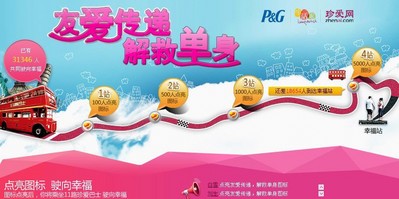 深圳2012年11月14日電 /美通社/ -- 不知不覺(jué)光棍節(jié)已經(jīng)成為各大品牌爭(zhēng)相搶灘的一個(gè)大型狂歡,今年打著“末日光棍節(jié)”旗號(hào),搶灘之戰(zhàn)更是愈演愈烈。中國(guó)較大的相親網(wǎng)站珍愛(ài)網(wǎng)率先與寶潔以及國(guó)內(nèi)各大電商網(wǎng)站(天貓、京東商城、亞馬遜、一號(hào)店、蘇寧易購(gòu)、繽購(gòu)網(wǎng)、當(dāng)當(dāng)網(wǎng))聯(lián)手,打造一場(chǎng)光棍節(jié)較強(qiáng)跨界營(yíng)銷,以別出心裁的主題角度吸引了近10萬(wàn)網(wǎng)友共同參與。