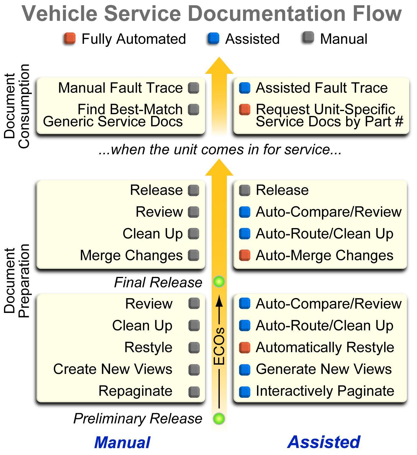圖1:傳統(tǒng)手動服務(wù)文件流程與新的自動化解決方案的對比