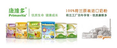北京2013年1月16日電 /美通社/ -- 康維多(PRIMAVITA)是來自荷蘭的優(yōu)質(zhì)配方奶粉,關(guān)愛寶貝健康成長。自2005年進(jìn)入中國以來,堅(jiān)守100%純正荷蘭品質(zhì);歐盟嚴(yán)格監(jiān)管體系;高標(biāo)準(zhǔn)奶源配以百年高科技生產(chǎn)工藝 ,目前擁有牛奶粉系列、羊奶粉系列和即將上市的特殊配方系列三大系列數(shù)十一款單品,將安全、營養(yǎng)的健康關(guān)愛帶進(jìn)更多中國家庭,呵護(hù)寶寶健康成長。