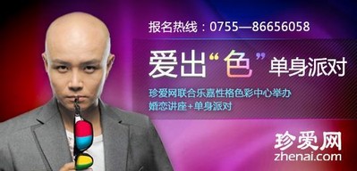 深圳2013年1月22日電 /美通社/ -- 紅、藍、黃、綠,每個人都有屬于自己的性格色彩,而看似平凡的色彩,卻指引著你的愛情之路,單身的你,知道自己是何“顏色”嗎?1月26日,中國較大的相親網(wǎng)站珍愛網(wǎng)(Zhenai.com)將聯(lián)合樂嘉創(chuàng)辦的“中國性格色彩研究中心(FPA)”,特別策劃珍愛幸福學(xué)院之愛出“色”單身派對,F(xiàn)PA 性格色彩研究中心金牌導(dǎo)師、樂嘉親授弟子高磊老師將開啟色彩大講堂,為你剖析色彩人生,助你找到出“色”愛情!