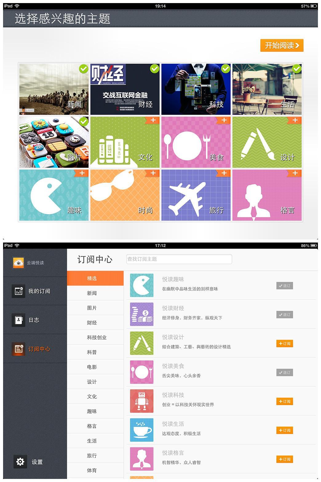 《云端悅讀》是一款免費閱讀工具,具有智能排列的閱讀版式,匯集上千內容源,覆蓋了時政、科技、娛樂等數十個興趣分類,并且精選每日熱門主題資訊,并設有獨特方便的社交功能。iPad 版產品于2月15日在 app store 上架。