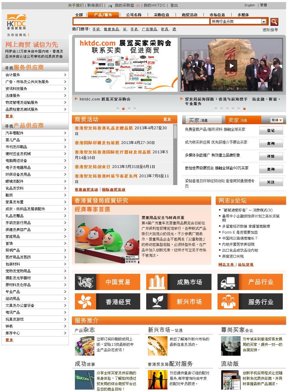 作為結(jié)合書、網(wǎng)、展的全方位外貿(mào)推廣平臺,是香港貿(mào)發(fā)局獨有的優(yōu)勢,有利于幫助中小企業(yè)拓展環(huán)球業(yè)務(wù)、協(xié)助內(nèi)地企業(yè)走出去。香港貿(mào)發(fā)局網(wǎng)上貿(mào)易平臺 -- “貿(mào)發(fā)網(wǎng)” www.hktdc.com 現(xiàn)時匯聚12萬優(yōu)質(zhì)供應(yīng)商用戶群,當(dāng)中包括貿(mào)發(fā)局展會參展商及產(chǎn)品雜志廣告商;登記買家超過130萬,包括每年到港參加貿(mào)發(fā)局展覽會的優(yōu)質(zhì)買家,全年不斷經(jīng)“貿(mào)發(fā)網(wǎng)”進(jìn)行采購。除此之外,貿(mào)發(fā)局每年舉辦30多項頂級貿(mào)易展覽會,當(dāng)中3個是全球之冠,9個為亞洲較大。而香港貿(mào)發(fā)局每年亦發(fā)行15類產(chǎn)品雜志及數(shù)十本專題特刊,直達(dá)全球500萬名買家。