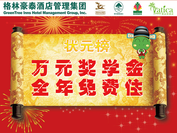 十年寒窗苦讀,換一朝金榜題名。對大多數家庭而言,這不僅是一場考試,更關乎孩子的未來。加之現在獨生子女居多,高考已不再是一個人的考試,而是成為全家總動員的“大戰”。為此,格林豪泰啟動“百萬元高考獎勵基金”計劃,凡高考期間入住格林豪泰酒店的考生,金榜題名獲得省狀元者,可獲得萬元獎學金以及一年免費入住格林豪泰酒店特權。格林豪泰相關負責人表示,啟動“百萬元高考獎勵基金”計劃,一方面恭賀考生金榜題名摘得魁首,希望通過這種方式激勵考生們大學期間更加努力和順利地完成學業;另一方面考生們可以使用這筆基金帶著父母家人去旅游,感恩回報他們辛勤付出。